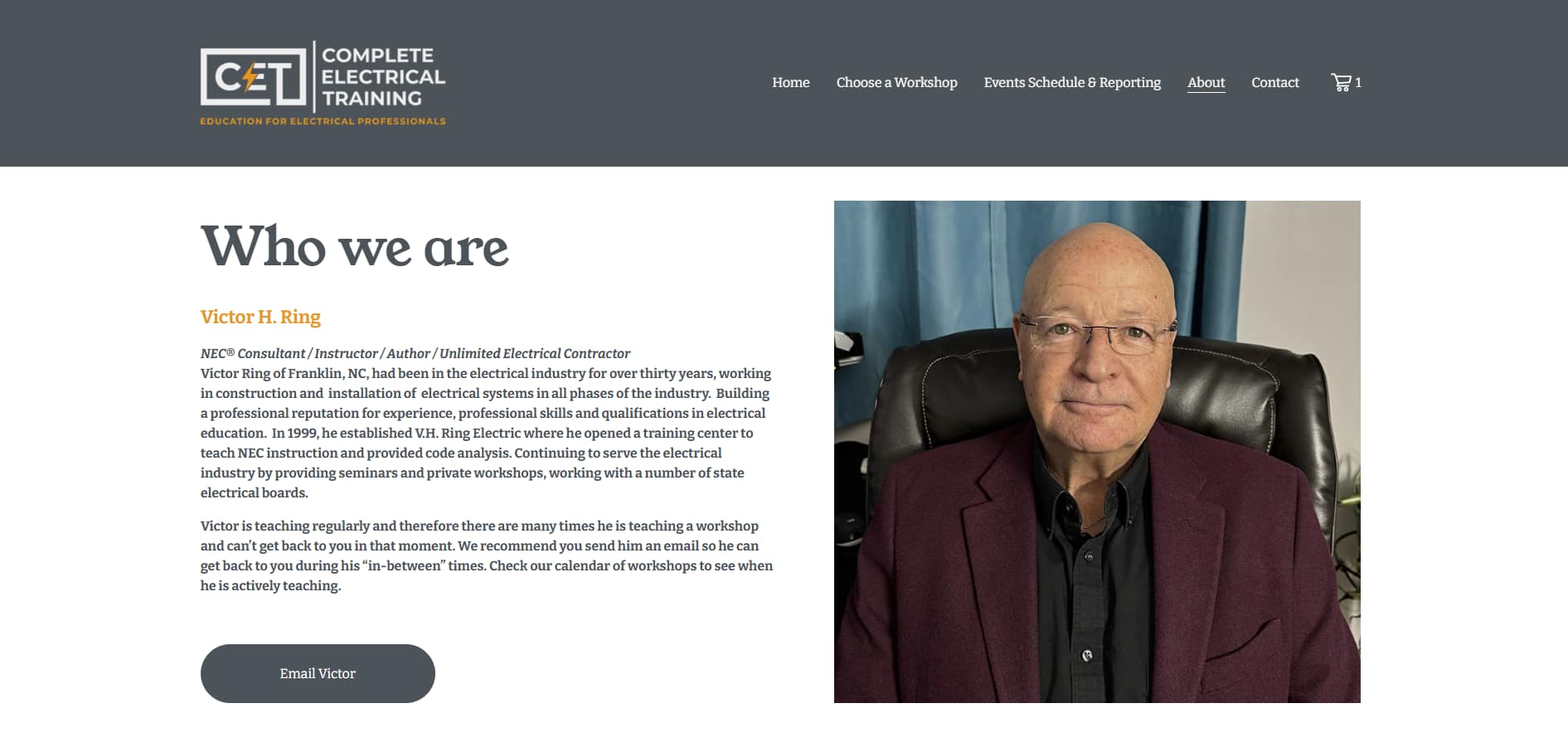 The goal was to add some of Victor's personality into a site that helps electrical professionals to sign up for his training easily.